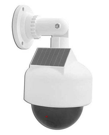 Atrapa kamery DS-2800S. Profesjonalna atrapa kamery, której nie sposób odróżnić od prawdziwej kamery monitoringu. Atrapa wyposażona została w czerwoną diodę LED „nagrywania” oraz bardzo realistyczną atrapę obiektywu. Realizm tego urządzenia powoduje, że ma się wrażenie kontaktu z profesjonalnym sprzętem monitoringu. Wykonanie tego urządzenia cechuje się najwyższą jakością użytych materiałów, dbałością o szczegóły oraz starannością i precyzją wykonania. Zainstalowana na wysokości 2 metrów, powoduje, że nie można odróżnić jej od prawdziwej kamery, a migająca dioda LED nadaje realizmu i autentyczności funkcjonowania. Cechą wyróżniającą to urządzenie, jest fakt, że wyposażone ono zostało w baterię słoneczną, która dodatkowo wydłuży czas pracy i zmniejszy koszty związane z wymianą baterii. Rozmiar i estetyczne wykonanie sprawiają, iż kamera nadaje się doskonale jako atrapa kamery zewnętrznej, do zastosowania zarówno w przemyśle, jak i dla prywatnych użytkowników w domu.