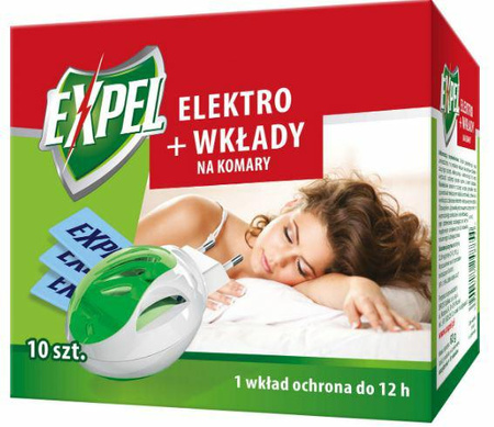 Elektro z wkładami zapasowymi przeznaczony do zabezpieczania pomieszczeń przed komarami . Jedna płytka zabezpiecza pomieszczenie o kubaturze około 50 m 3 do 12 h. Do urządzenia pasuje większość dostępnych na rynku płytek owadobójczych oraz zbiorników z płynem owadobójczym.Informacja o bezpieczeństwie