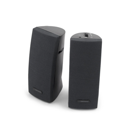 Wysokiej jakości stereofoniczne głośniki do notebooków i komputerów stacjonarnych. Gwarantują czyste i naturalne brzmienie dźwięku. Elegancki wygląd sprawia, że doskonale komponują się na biurku z monitorami LCD i innymi akcesoriami. Współpracują ze wszystkimi komputerami posiadającymi wyjście głośnikowe i wyjście USB. Posiadają wbudowany wyłącznik, regulację głośności oraz wyjście słuchawkowe. Wysokiej jakości materiały użyte do produkcji zabezpieczają przed elektryzowaniem się i przed generowaniem zakłóceń elektromagnetycznych.,,DANE TECHNICZNE:,,Moc skuteczna: 2x3W,,Impedancja: 4?,,Zakres częstotliwości: 60Hz-20kHz,,Wyjście słuchawkowe: Mini-Jack stereo 3.5mm,,Zasilanie: 5V,,Wymagają złącz: USB i wyjście słuchawkowe Mini-Jack 3.5mm,,Wymiary: 180x75x93mm,,Długość kabla zasilającego USB: 1m,,Długość kabla sygnałowego mini Jack: 1m,,Długość kabla między głośnikami (maksymalny rozstaw głośników): 0,8mInformacja o bezpieczeństwie