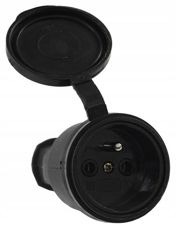 Wykonanie z gumy gwarantuje długą żywotność wyrobu. Gniazdo przenośne, przeznaczony jest do zastosowań wewnętrznych i zewnętrznych, do montażu na kablu.