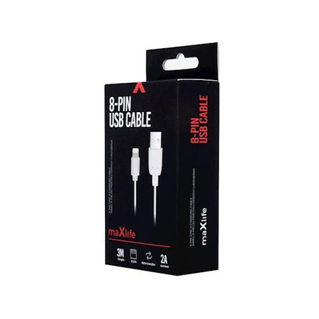 Kabel marki Maxlife ze złączem 8-PIN. Jeśli posiadasz wiele urządzeń takich jak głośniki, power bank, słuchawki, smartfon i szukasz kabla, który naładuje je wszystkie lub zapewni sprawne przesyłanie danych to właśnie ten kabel sprawdzi się idealnie. Szczególnie polecany do nowszych modeli telefonu. Funkcja szybkiego ładowania pozwoli Ci oszczędzić Twój cenny czas. Długość trzech metrów gwarantuje swobodne podłączenie urządzeń, nawet tych daleko znajdujących się od gniazdka. Produkt świetnie sprawdzi się w sypialni czy biurze, gdy chcesz mieć urządzenie blisko siebie. Dzięki zwiększonemu amperażowi (2A) nie musisz martwić się o gorszą jakość przesyłania danych spowodowaną długością kabla. Dużą zaletą jest jego elastyczność, dzięki czemu jest niezwykle funkcjonalny oraz wygodny w użyciu. Solidne wykonanie zapewnia prawidłowe funkcjonowanie kabla.Informacja o bezpieczeństwie