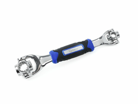 Uniwersalny klucz wielofunkcyjny 48w1 wykonany z wytrzymałej stali narzędziowej CrV. Klucz wielofunkcyjny 48w1 to niezastąpione narzędzie w każdym domu i garażu, a także w profesjonalnym warsztacie samochodowym. Z powodzeniem zastąpi klucze przeznaczone do śrub lub nakrętek 12-kątnych, 6-kątnych, 4 kątnych, E-Torx, wielowypustowych oraz calowych.