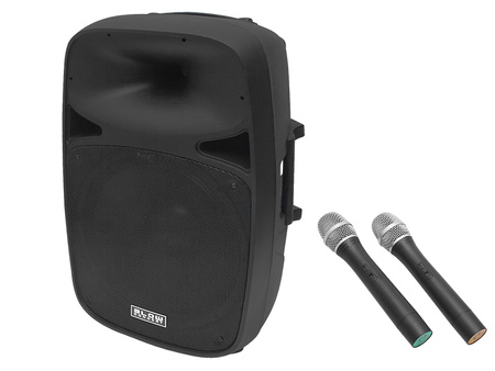"Kolumna głośnikowa aktywna USB/SD BLOW. Wysokiej klasy dwudrożna kolumna z wbudowanym wzmacniaczem, pojemnym akumulatorem oraz czytnikiem USB/SD. Idealne połączenie prostoty przenośnego odtwarzacza z potężnym systemem nagłośnieniowym. Wbudowany czytnik kart SD i slot USB umożliwia odtwarzanie plików MP3, WMA, informacje o odtwarzanych utworach wyświetlane są na monochromatycznym ekranie LCD. Za sterowanie odtwarzaniem plików z zewnętrznego źródła odpowiedzialna jest konsola z przyciskami funkcyjnymi. Istnieje również możliwość podłączenia zewnętrznego źródła dźwięku przez wejście liniowe (gniazdo: 2xRCA). Kolumna posiada dwa bezprzewodowe mikrofony z oddzielną regulacją głośności. Wbudowany korektor graficzny pozwala na sterowanie barwą dźwięku i poziomem tonów niskich i wysokich. Stan pracy sygnalizowany jest za pomocą diod LED. Emitowany dźwięk charakteryzuje się wysoką częstotliwością i szerokim zakresem barwy dźwięku. Zamontowany głośnik typu woofer 15"" na sztywnym zawieszeniu wyInformacja o bezpieczeństwie