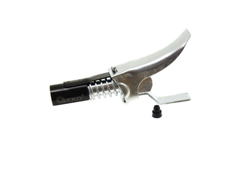 Samoblokująca końcówka smarownicy. Umożliwia szybkie i proste smarowanie części podczas prac konserwacyjnych bez niepotrzebnych strat smaru. Mechanizm samoblokujący umożliwia smarowanie bez potrzebny trzymania i dociskania końcówki do smarowniczki.