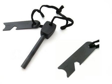 Bardzo proste w użyciu. Wystarczy na dłuższy okres niż zapałki, ok. 5000 użyć. Niezawodne nawet, gdy jest mokre. Pozwala rozpalić ogień bez względu na warunki atmosferyczne. Świetnie nadaje się do rozpalania ogniska, grilla itp. Krzesiwo posiada wbudowany otwieracz do kapsli oraz miarkę.,,Wymiary: ,- długość całkowita 10 cm,- średnica krzesiwa 7,5 mm,- blaszka 7,5 cm x 2 cm ,- waga 48 g,,Aby wywołać ogień wystarczy zeskrobać ząbkowaną częścią blaszki nieco magnezu, a później intensywnie pocierać krzesiwo, tak aby iskry leciały na zdrapane okruszki.,Informacja o bezpieczeństwie