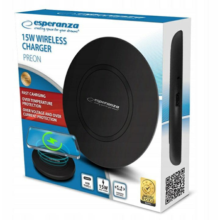Wygodna i łatwa w użyciu szybka ładowarką bezprzewodowa. Współpracuje ze wszystkimi urządzeniami wyposażonymi w technologię ładowania bezprzewodowego (smartfony, urządzenia mobilne itp.). Wystarczy położyć telefon na podstawce – ładowanie rozpocznie się automatycznie. Posiada wbudowane zabezpieczenie przeciwzwarciowe, przeciwprzepięciowe i termiczne.