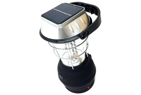 Akumulatorowa lampa turystyczna znakomita w warunkach polowych na kempingu lub biwaku. Źródło światła stanowi 36 LED wbudowanych w odblaskowy korpus, który rozprowadza światło równomiernie w każdą stronę. Przydatny uchwyt umożliwiający podwieszenie lampy w namiocie lub w przyczepie kempingowej. Pięć sposobów zasilania czyni lampę urządzeniem uniwersalnym, przydatnym w każdych warunkach!Źródło światła osłonięte jest wytrzymałym tworzywem oraz metalową siatką.Lampa zaopatrzona jest w ogniwo solarne, pobierające energię z promieni słonecznych. Lampa posiada również wbudowane dynamo, umożliwiające korzystanie z lampy w wypadku braku innych źródeł zasilania. Wystarczy pokręcić wbudowaną korbką i lampa zaczyna świecić! Lampa może być zasilana również z 12V gniazda zapalniczki samochodu dzięki ładowarce, która jest w zestawie. Lampa posiada wbudowany akumulator, który można ładować również bezpośrednio z sieci 220V za pomocą dołączonego kabla w zestawie, lub trzech baterii.Informacja o bezpieczeństwie
