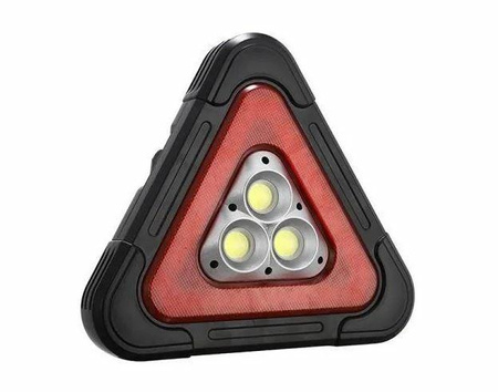 Specyfikacja: Model: HB-7709 Materiał: ABS Napięcie: DC 4,5 V Moc: 3 COB + 36 LED Źródło światła: COB Kolor światła: czerwony / biały Lumenów: 500 lumenów (białe światło) / 300 lumenów (czerwone światło) zasilanie: światło słoneczne + wewnętrzna bateria 2000 mAh Tryb światła: 5 trybów (białe mocne światło / białe słabe światło / czerwone światło ciągłe / czerwony szybkie miganie / czerwone wolne miganie) Waga: 405 gr. Temperatura barwowa: 6500 K (zimny biały) Posiada 5 trybów, a mianowicie: Białe mocne światło Białe słabe światło Czerwony światło ciągłe Czerwony szybkie miganie Czerwony wolne miganie W zestawie: Trójkąt ostrzegawczy Kabel USB Opakowanie