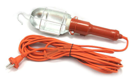 Lampa warsztatowa z kablem 10m na żarówkę max 60W. Włącznik w uchwycie oraz wtyczka do przedłużacza . Możliwość powieszenia dzięki zamontowanemu hakowi. Zasilanie 220V. Pakowana w opakowanie foliowe.Informacja o bezpieczeństwie