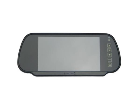 Wyświetlacz w lusterku wstecznym 7`` montowany jako nakładka na oryginalne lusterko, pilot, sterujący, wbudowany odtwarzacz plikoów video z USB, panel dotykowy, dwa wejścia video, wymiary 249*109*23, rozdzielczość 480x360, właczanie obrazu przy wstecznym biegu, obracanie obrazu.7" zasilanie 12VInformacja o bezpieczeństwie