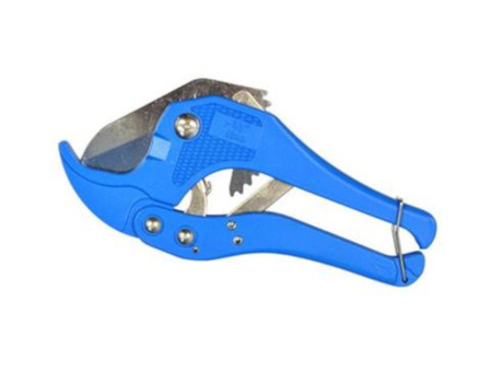 Nożyce do cięcia rur PCV,Nożyce wykonane z wysokiej jakości hartowanej i polerowanej stali szlifowanej mechanicznie. Przeznaczone do cięcia rur z tworzyw sztucznych takich jak: PEX, PP-R, PE-RT, PE, PB.,,Cechy produktu:,hartowane i polerowane ostrza,szeroka budowa szczęk nożyc,wykonywanie precyzyjnych i prostych cięć,mechanizm zapadkowy zwiększający siłę nacisku,możliwość cięcia kabli miedzianych o średnicy do 12 mmInformacja o bezpieczeństwie