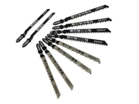 Zestaw 10 szt. brzeszczotów do wyrzynarki - stal HCS,,Zestaw wysokiej jakości brzeszczotów do wyrzynarki.,Nożyki wykonano z wysokiej jakości stali HCS umożliwiającej wykonywanie precyzyjnego cięcia.,Brzeszczoty ze standardowym uchwytem typu T pasują do większości wyrzynarek.,W skład zestawu wchodzi 5 rodzajów brzeszczotów: T111C, T101B, T144D, T101D, T119BO.,Opis i przeznaczenie brzeszczotów:,2x T 111 C Basic for Wood - do prostych, zgrubnych cięć w miękkim drewnie i płycie stolarskiej o grubości 4-50 mm.,2x T 101 B Clean for Wood - do prostych, dokładnych cięć w miękkim drewnie, płycie stolarskiej i sklejki o grubościach 3-30 mm, oraz drewna konstrukcyjnego i tworzywa sztucznego o grubości 30. Cięcie nie wymaga rozpoczęcia od krawędzi materiału.,2x T 144 D Speed for Wood - do prostych, zgrubnych cięć w miękkim drewnie i płycie stolarskiej o grubości 5-50 mm. Ciecie nie wymaga rozpoczęcia od krawędzi materiału.,2x T 101 D Clean for Wood – do wykonywania prostych, dokładnychInformacja o bezpieczeństwie