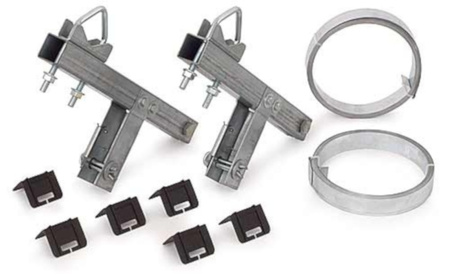 Uchwyt, obejma kominowa:,,- 2x metalowa taśma o długości 5 metrów każda- 2x kształtownik: 30x30 mm- odległość cybantów od komina: 15 cm - ,śruby wraz z nakrętkami napinającymi taśmę: 4 x M12Uchwyt bezinwazyjny, bez konieczności wiercenia, przykręcania.