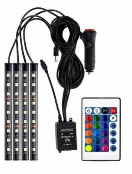 Listwy można zamontować w różnych miejscach - nad nogami, pod siedzeniami, w bagażniku, pod drzwiami itp.Łatwe mocowanie za pomocą taśmy dwustronnej (w zestawie). Włącznik znajduje się na pilocie, który pozwala nasterowanie kolorem, jasnością, trybem świecenia. Oświetlenie można też szybko włączyć/wyłączyć za pomocą przycisku znajdującego się na wtyku do zapalniczki samochodowej (przycisk jest podświetlany, dzięki czemu łatwo go zidentyfikujesz nawet podczas nocnej jazdy)