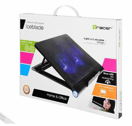 Tracer Tornado to cooler dla wymagających użytkownik notebooków. Stacja posiada 2 duże, wbudowane ciche 125mm wentylatory podświetlane na niebiesko. Pasuje do komputerów przenośnych o rozmiarze ekranu od 10" do 17". Podstawka chłodząca jest zasilana z portu USB, posiada regulator obrotów, dwuportowy HUB oraz włącznik co dodatkowo poprawia komfort pracy.Tornado jest wyposażona w nóżki, aby poprawić komfort pracy użytkowania.