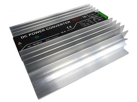 Reduktor napięcia RED-16 to nowoczesne urządzenie przeznaczone do obniżania napięcia 24V instalacji występujących w m.in.: samochodach ciężarowych, na napięcie 12V.