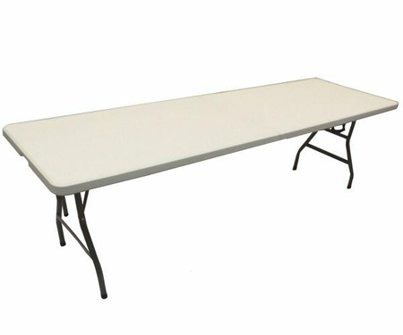 Wysokiej jakości stół składany 240 cm. Idealny na grilla, biwak, piknik, do ogrodu, sadu czy na działkę. Można z niego korzystać zarówno wewnątrz, jak i na zewnątrz budynków. Prosty w użyciu, łatwo się składa. Wygodny w przechowywaniu i przenoszeniu dzięki wbudowanym uchwytom. Solidne i stabilne nogi o? średnicy 25mm (model wzmocniony). Może być wykorzystywany przez firmy cateringowe. Stół wyposażony w blokadę przed przypadkowym złożeniem (dwa metalowe trzpienie).