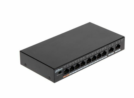 Switch PoE DH-PFS3010-8ET-96 to urządzenie typu przemysłowego zapewniające płynną transmisję sieciową z prędkością 10 / 100 / 1000 Mbps. Urządzenie idealnie nadaje się do budowy sieci kamer IP z zasilaniem w standardzie PoE 802.3af / 802.3at.Informacja o bezpieczeństwie