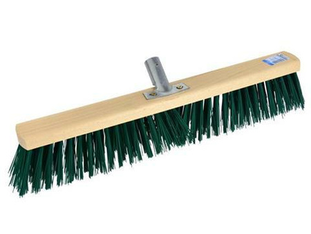 Miotła "ulicówka" z twardym nylonowym włosiem osadzonym na drewnianym korpusie. Metalowy uchwyt do drewnianego kija bez gwintu.