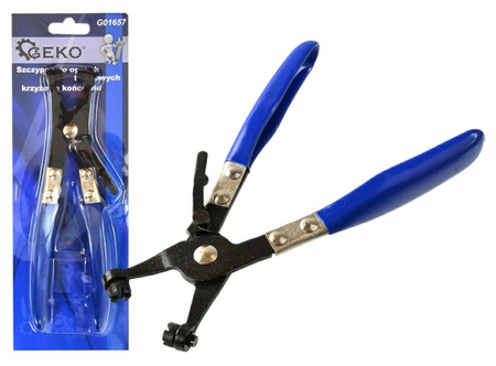 Szczypce proste służące do ściskania opasek rozprężnych stosowanych na przewodach elastycznych paliwowych, olejowych oraz wodnych w samochodach (układ chłodzenia, paliwowych, klimatyzacji).
