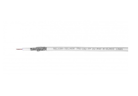 Znakomitej klasy przewód koncentryczny 75 Ohm, z rdzeniem miedzianym o średnicy 1,02 mm i z płaszczem PCV. Kabel TT6-102-77 Cu wyróżnia się bardzo dobrymi wartościami najważniejszych parametrów, jakimi są dopasowanie i tłumienie - dla częstotliwości poniżej 865MHz nie jest wyższe niż 20dB. Wykonanie kabla w technologii T-Shield 77% oplotu zapewnia wysoki poziom ekranowania i chroni sygnał przed wpływem zakłóceń zewnętrznych. Tym samym spełnia wymogi rozporządzenia MTBiGM (klasa A). Ze względu na wysoką jakość wykonania oraz bardzo dobre parametry techniczne w swej klasie, kabel jest idealnym rozwiązaniem dla potrzeb modernizacji i rozbudowy sieci kablowych, zarówno dużych, jak również średnich i małych operatorów (CATV). Doskonale sprawdza się także przy budowie instalacji telekomunikacyjnych w budownictwie wielorodzinnym i w profesjonalnych, indywidualnych instalacjach RTV/SAT. Kabel przeznaczony jest do użytku wewnątrz budynków i pomieszczeń.Informacja o bezpieczeństwie