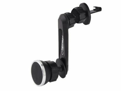 Uchwyt magnetyczny do smartfonów przytwierdzany do kratki wentylacyjnej w samochodzie.