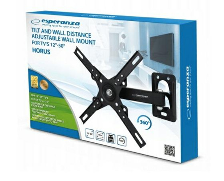 Metalowy, mocny uchwyt naścienny do telewizorów w rozmiarze od 12” do 50”. Łatwy w montażu. Zgodny ze standardem VESA 75x75 – 200x200. Posiada w zestawie małą poziomicę ułatwiająca wypoziomowanie uchwytu. Uchwyt posiada możliwość regulacji nachylenia, regulację kąta odchylenia w poziomie oraz regulację odległości telewizora od ściany.