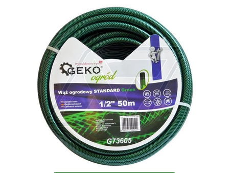 Wąż ogrodowy 3-warstwowy Standard Green 1/2” 50m,,Wąż ogrodowy 3-warstwowy 1/2” 30m wyprodukowany w Polsce. Charakteryzuje się dużą odpornością na warunki atmosferyczne oraz podniesioną odpornością na uszkodzenia mechaniczne dzięki 3-warstwowej strukturze wzmacnianej plecionym krzyżowym zbrojeniem tekstylnym. Ponad to materiały z jakich został wykonany zapobiegają osadzaniu się glonów wewnątrz węża.Informacja o bezpieczeństwie