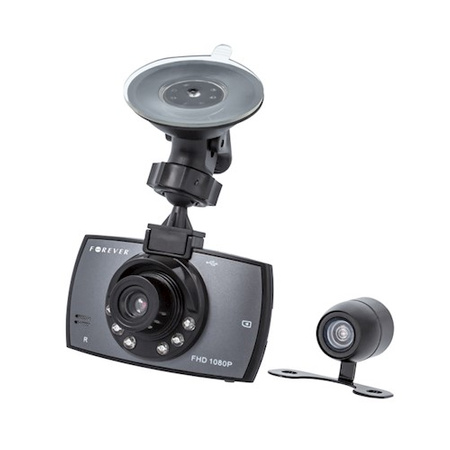 Wideorejestrator VR-200 wyposażony w dwie kamery pozwala rejestrować obraz z przodu i z tyłu samochodu.,Wysokość: 56 mm,Przekątna ekranu: 2,70 cal,Producent: TelForceOne,Kąt widzenia: 140°,Rozdzielczość: 1920 x 1080 px (Full HD),1280 x 720 px (HD),640 x 480 px,Waga netto: 54 g,Zestaw zawiera: wideorejestrator,kabel mini-USB,tylna kamera wraz z okablowaniem,uchwyt montażowy do szyby,Typ mocowania: przyssawka,Obsługa kart pamięci: microSD (do 32 GB),Dodatkowe informacje: aparat fotograficzny,diody LED,nagrywanie dźwięku,nagrywanie nocne,przycisk awaryjnego nagrywania,Zasilanie: wbudowana bateria litowo-polimerowa,Matryca: CMOS 5 MpxInformacja o bezpieczeństwie