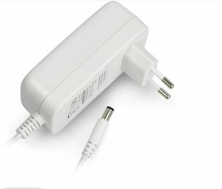 Stabilizowany zasilacz sieciowy. Napięcie zasilania: od 200 V do 240 V. Napięcie wyjściowe: 12 V DC. Prąd wyjściowy: 2,5 A. Zasilacz posiada długi przewód zasilający o długości 140 cm, natomiast rozmiar wtyczki DC wynosi 5,5 mm x 2,5 mmInformacja o bezpieczeństwie