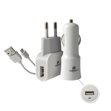 Uniwersalny zestaw zasilaczy do ładowania urządzeń wyposażonych w gniazdo micro USB. Idealny do urządzeń mobilnych typu smartfony, tablety, nawigacje GPS, odtwarzacze MP3 i inne. Doskonale sprawdzi się zarówno w domu, jak i w podróży. Zasilacze są wyposażone w zabezpieczenie przeciwprzepięciowe i przeciwprzeciążeniowe. Zestaw zawiera: zasilacz sieciowy, zasilacz samochodowy oraz kabel micro USB.Informacja o bezpieczeństwie