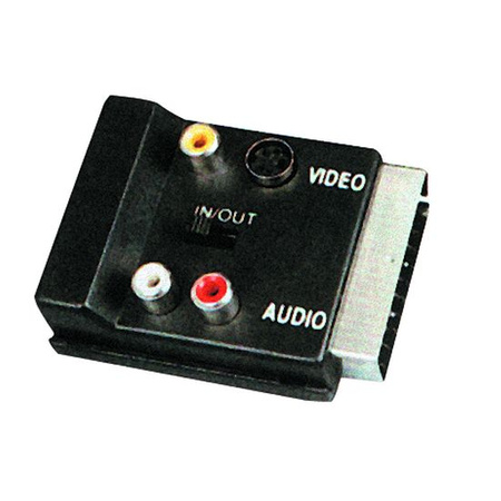 Złącze wtyk Euro - 3x wtyk RCA (Audio L, Audio R, Video) + gnizado Euro, przełącznik in-outInformacja o bezpieczeństwie